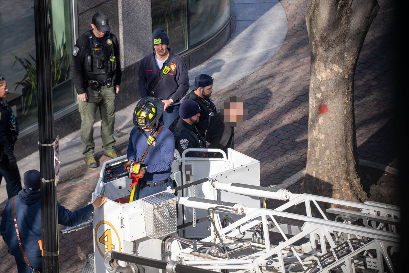 Police were called to the office tower at 3100 Clarendon Blvd — headquarters of the national news organization and previously of ARLnow — just before 10:30 a.m. for a report of a man on a fourth floor rooftop suffering a possible panic attack.
