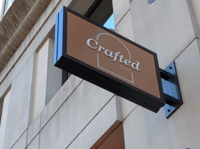Crafted Boutique Salon is aiming to open by March 1 at 2300 Clarendon Boulevard, in Courthouse Plaza, stylists Baylie Madaj and Katy Felice told ARLnow.