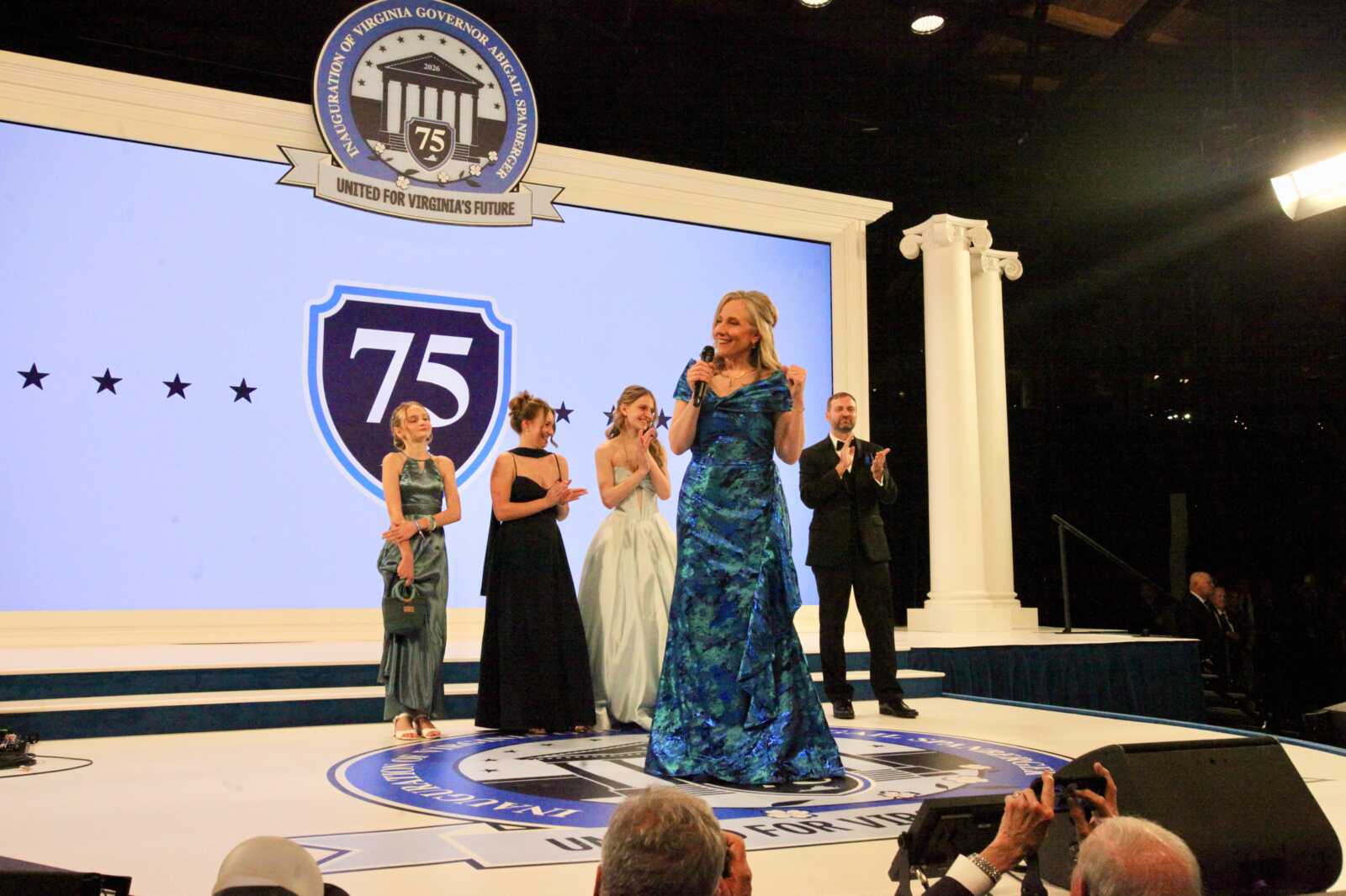 Gov. Abigail Spanberger and her family at her inaugural ball, Jan. 17, 2026 (staff photo by James Cullum)