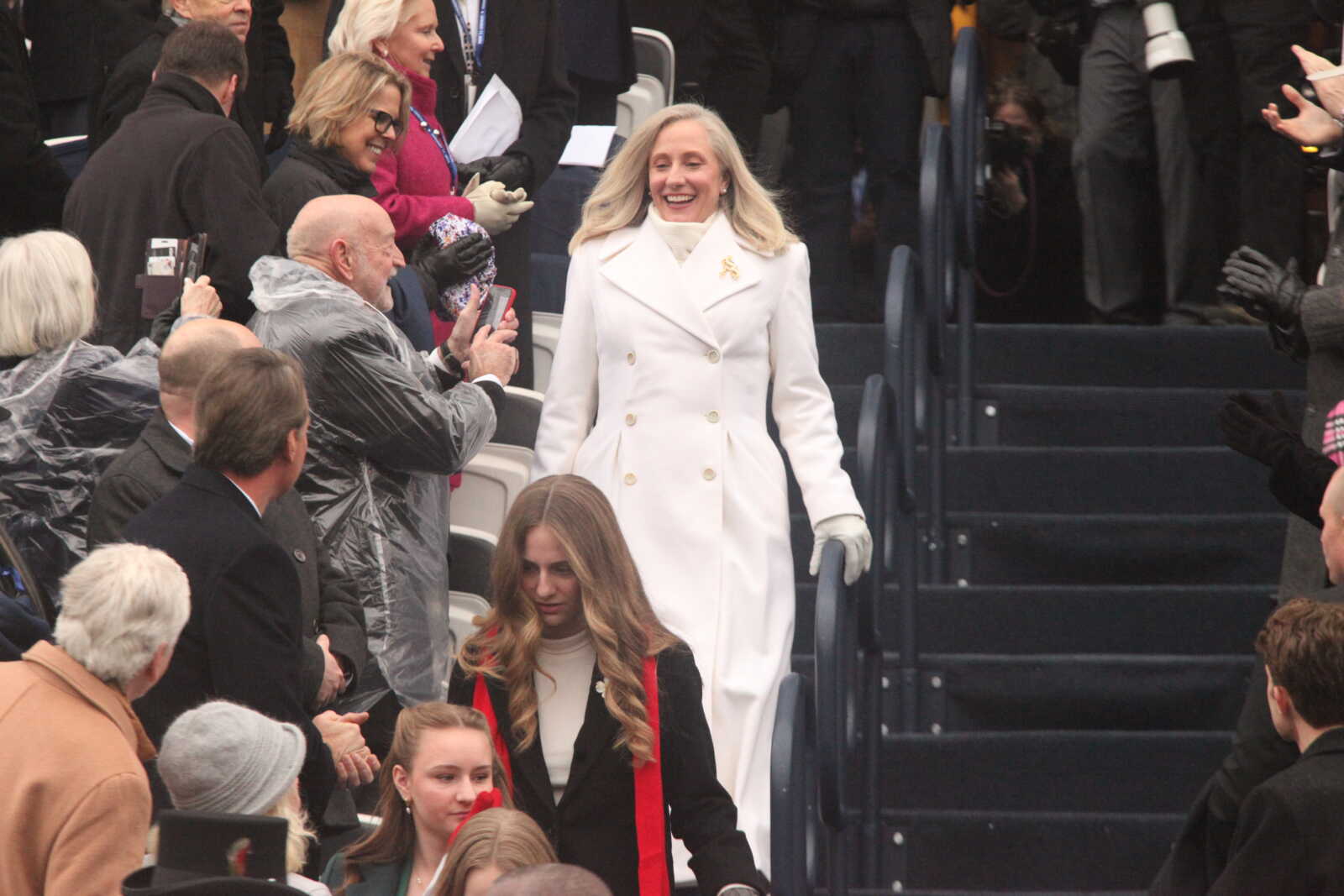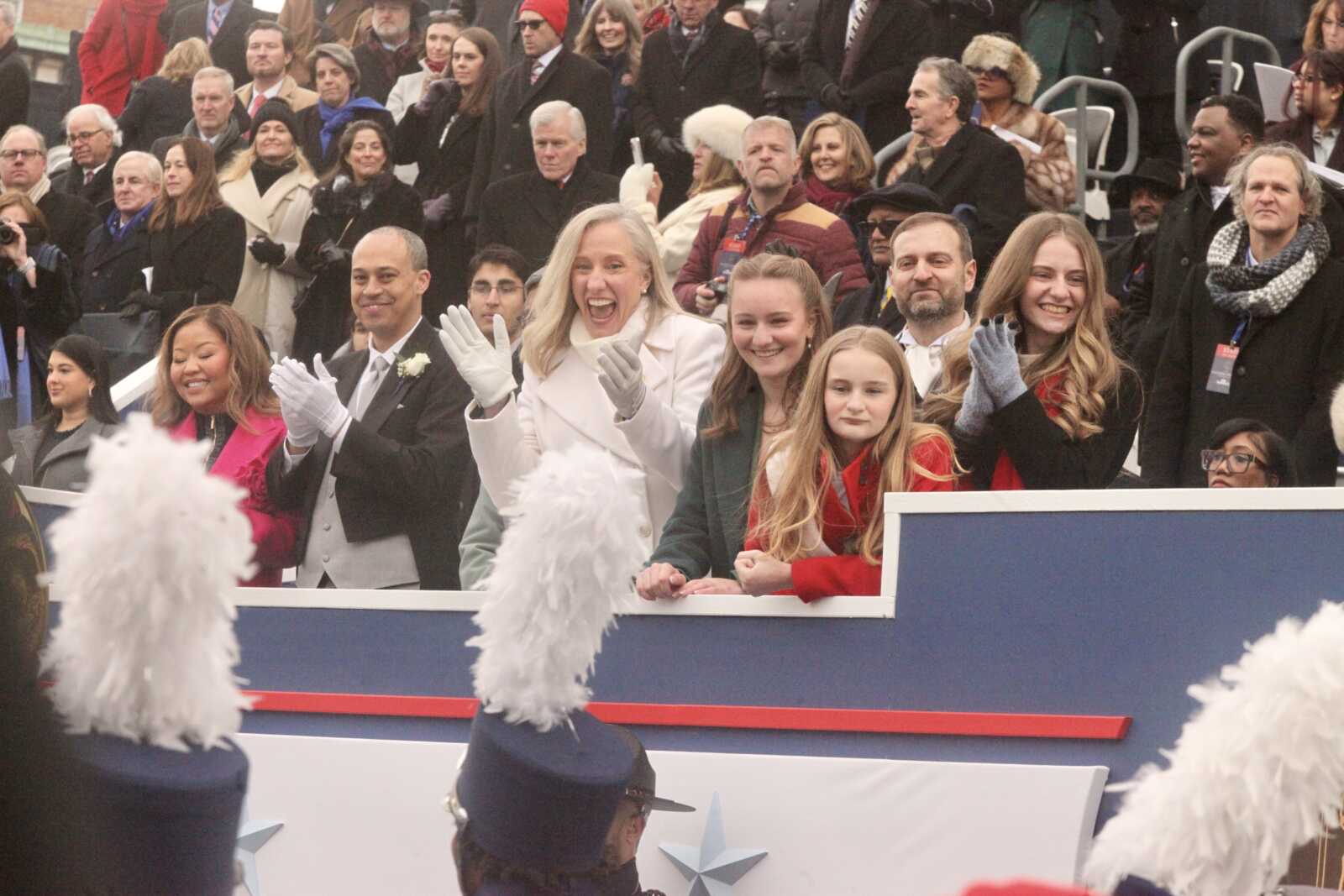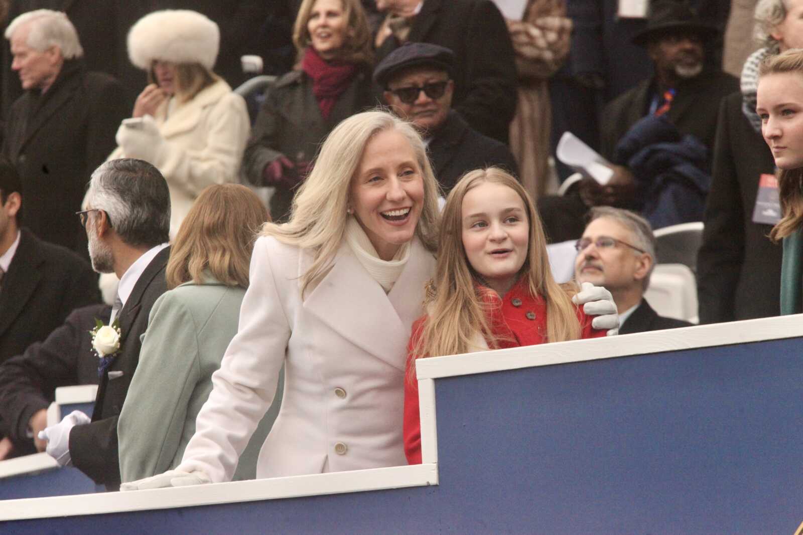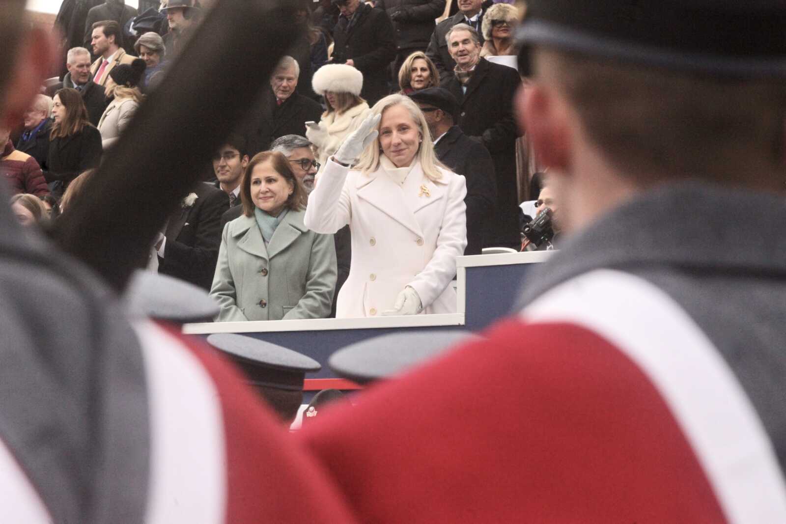 Gov. Abigail Spanberger and her daughter Catherine watch the Inaugural parade at the Virginia State Capitol, Jan. 17, 2026 (staff photo by James Cullum)