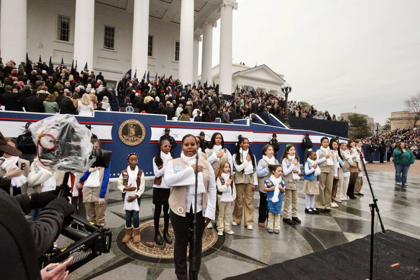 The Girl Scouts of Virginia recite the Pledge of Allegiance at the inauguration of Gov. Abigail Spanberger, Lt. Gov. Ghazala Hashmi and Attorney Gen. Jay Jones, at the Virginia State Capitol in Richmond, Jan. 17, 2026 (staff photo by James Cullum)