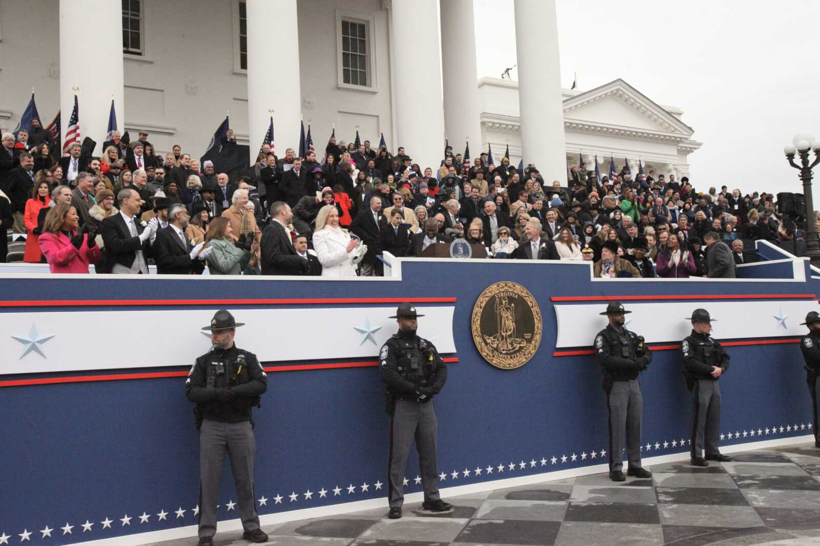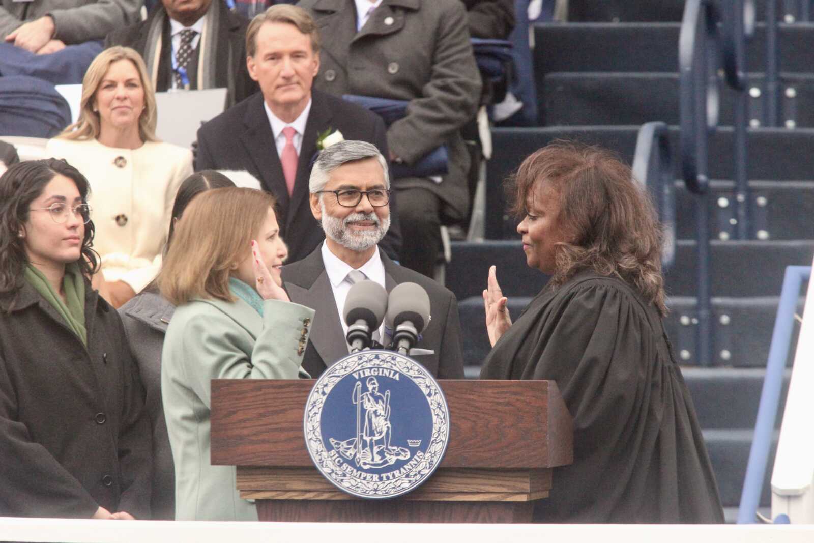 At the inauguration of Gov. Abigail Spanberger, Lt. Gov. Ghazala Hashmi and Attorney Gen. Jay Jones, at the Virginia State Capitol in Richmond, Jan. 17, 2026 (staff photo by James Cullum)