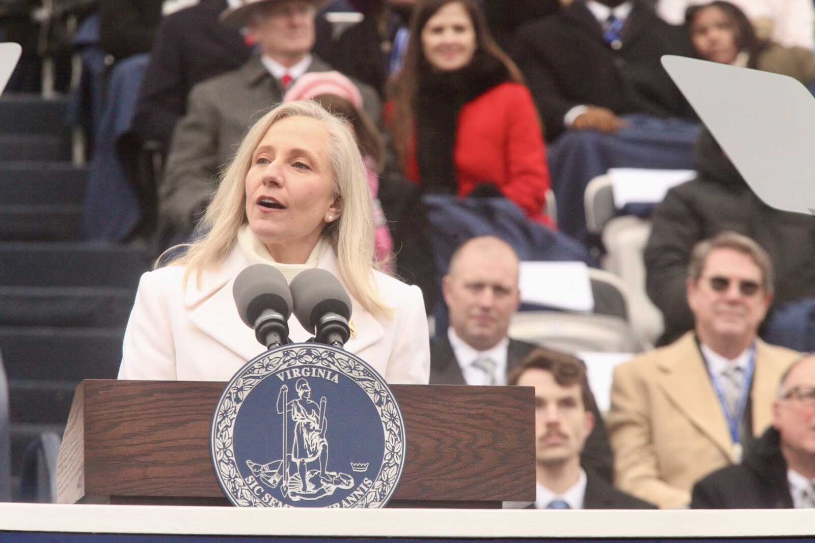 Gov. Abigail Spanberger speaks at her inauguration at the Virginia State Capitol, Jan. 17, 2026 (staff photo by James Cullum)
