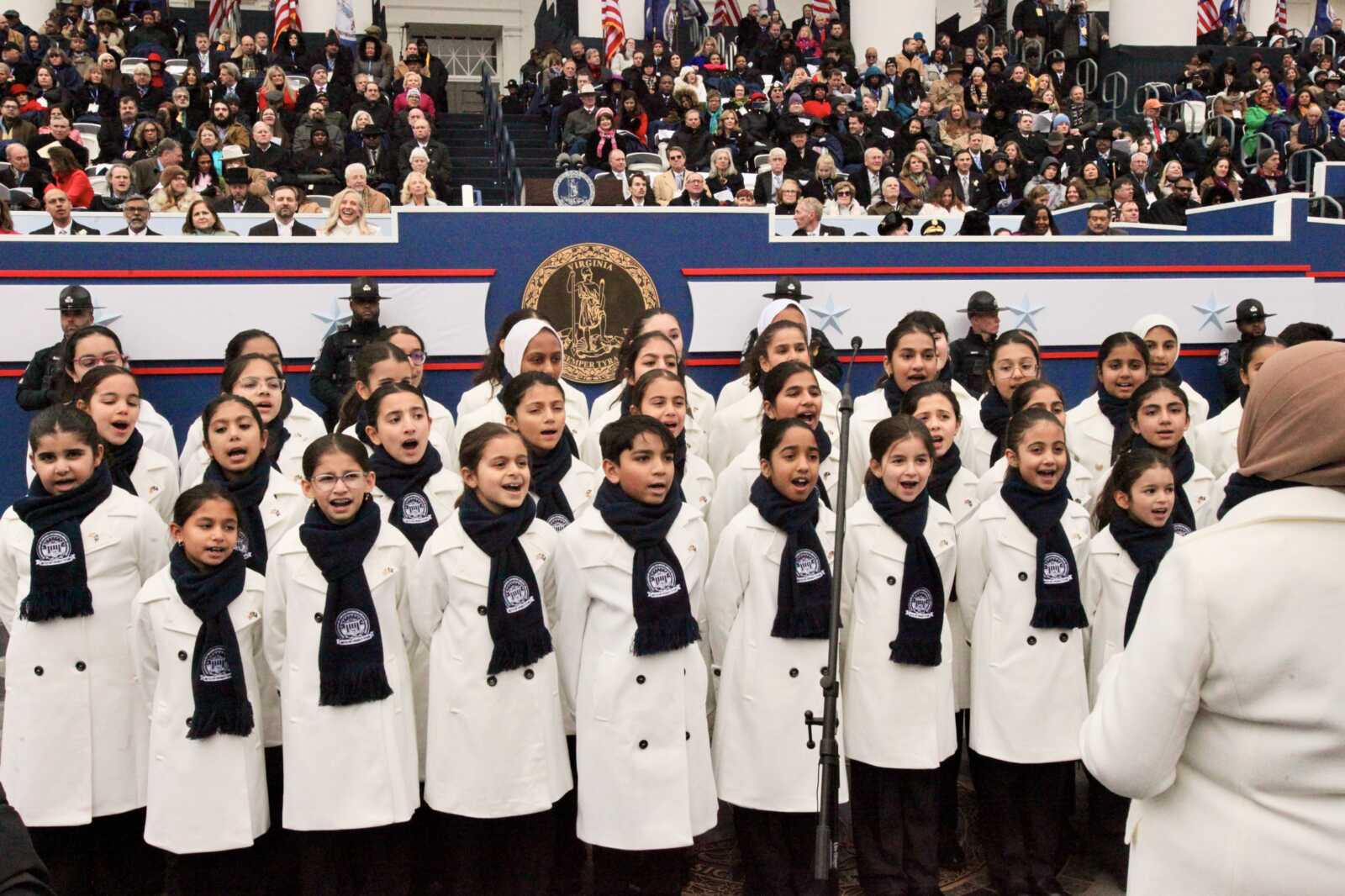 Adams Beat Muslim Children’s Choir sing “This Land Is Your Land” at the inauguration of Gov. Abigail Spanberger, Lt. Gov. Ghazala Hashmi and Attorney Gen. Jay Jones, at the Virginia State Capitol in Richmond, Jan. 17, 2026 (staff photo by James Cullum)
