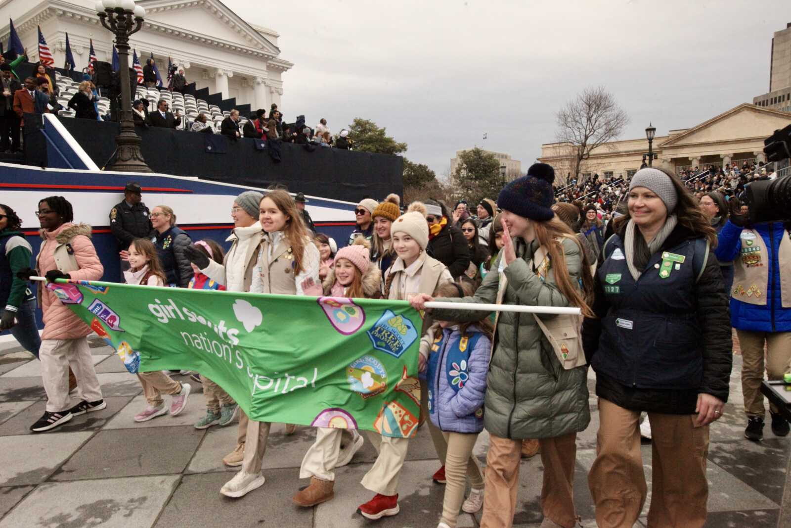 Girl Scouts of Virginia march in the Inaugural Parade at the Virginia State Capitol, Jan. 17, 2026 (staff photo by James Cullum)
