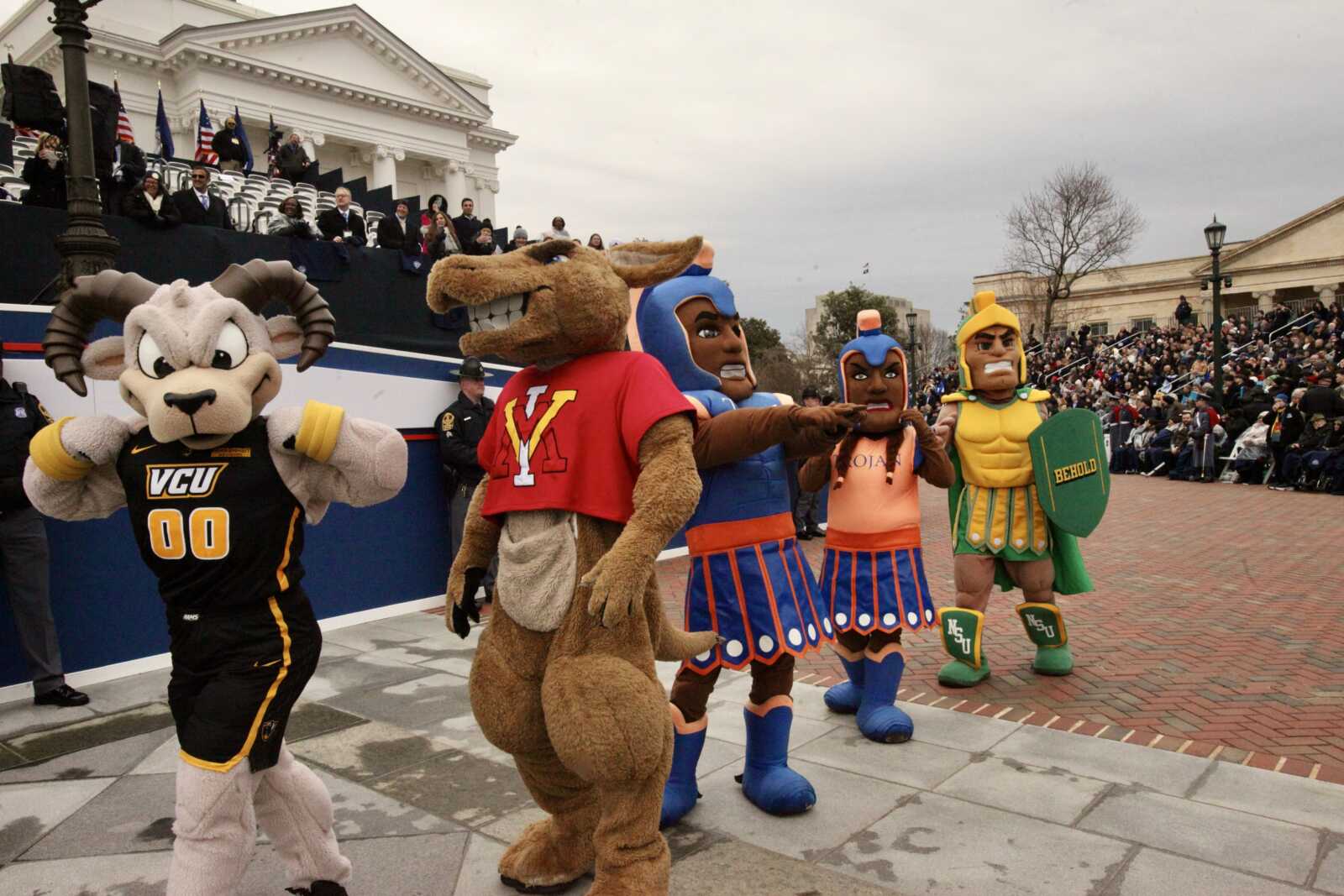 Mascots from Virginia’s public universities march in the Inaugural Parade at the Virginia State Capitol, Jan. 17, 2026 (staff photo by James Cullum)
