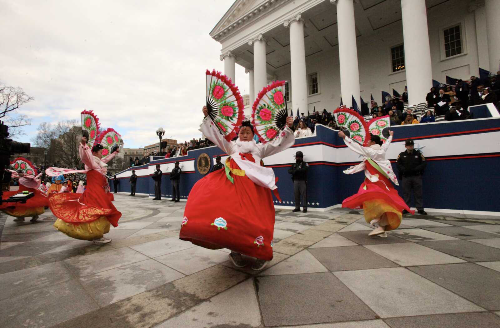 The Hasang Korean School Dance Team performs at the Inaugural parade at the Virginia State Capitol, Jan. 17, 2026 (staff photo by James Cullum)