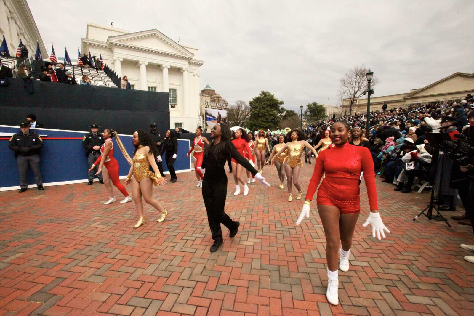Dancers with the All-City Marching Band at the Inaugural parade at the Virginia State Capitol, Jan. 17, 2026 (staff photo by James Cullum)