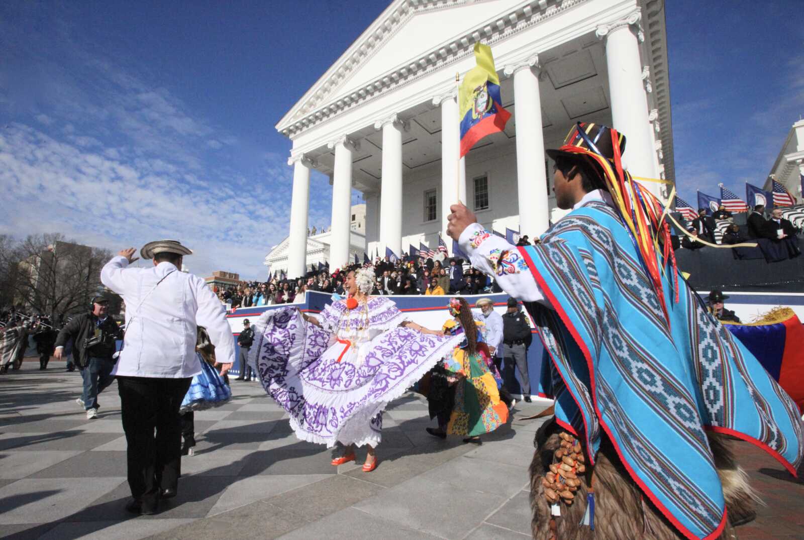 Expomundo USA and the Democratic Latino Organization of Virginia march in the Inaugural parade at the Virginia State Capitol, Jan. 17, 2026 (staff photo by James Cullum)