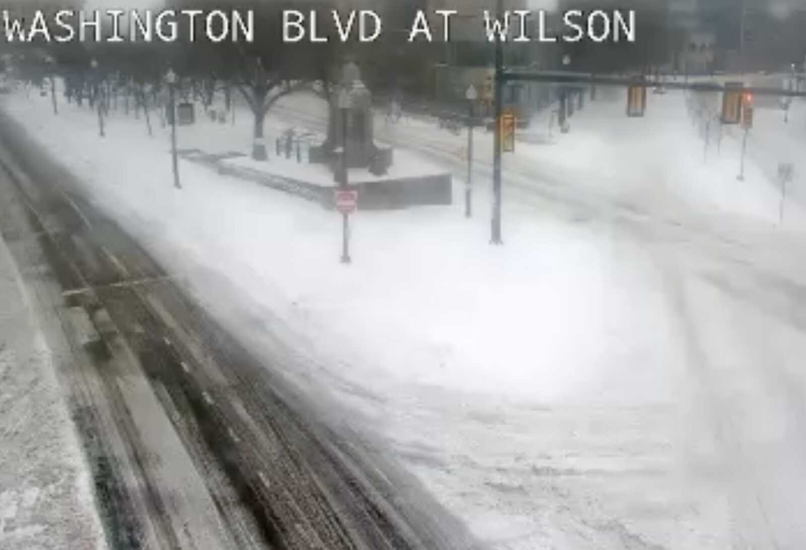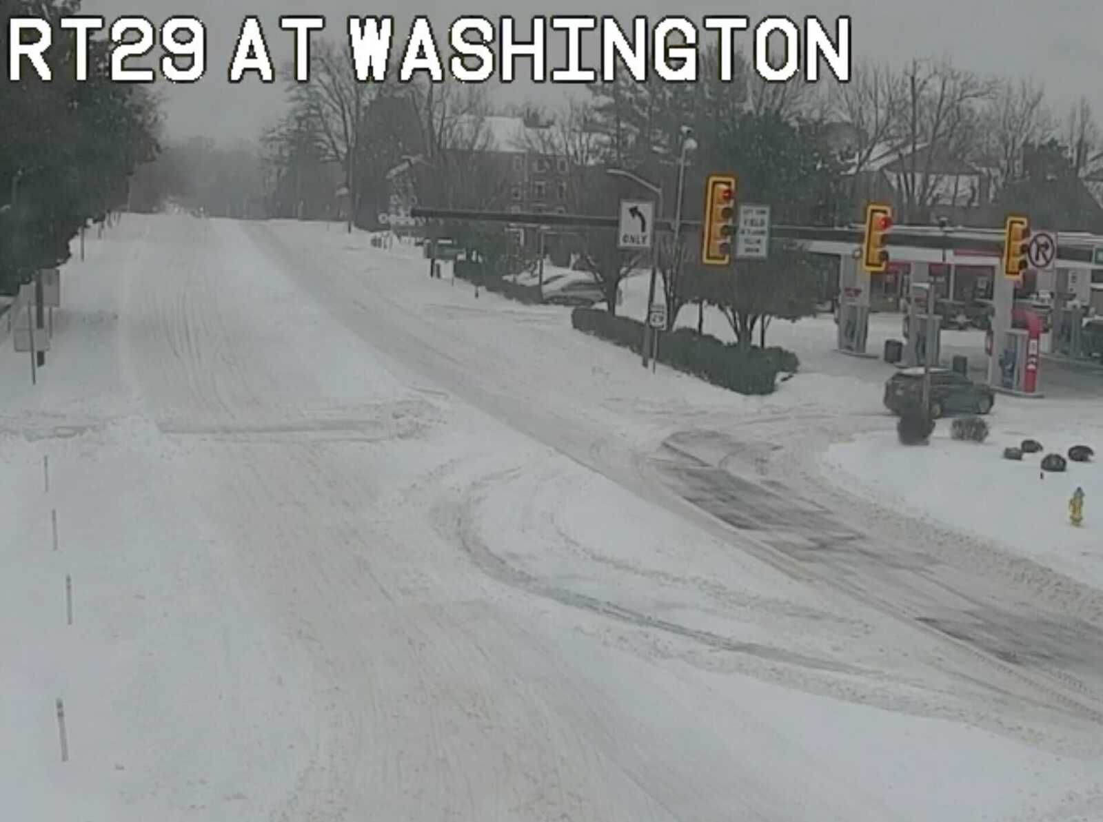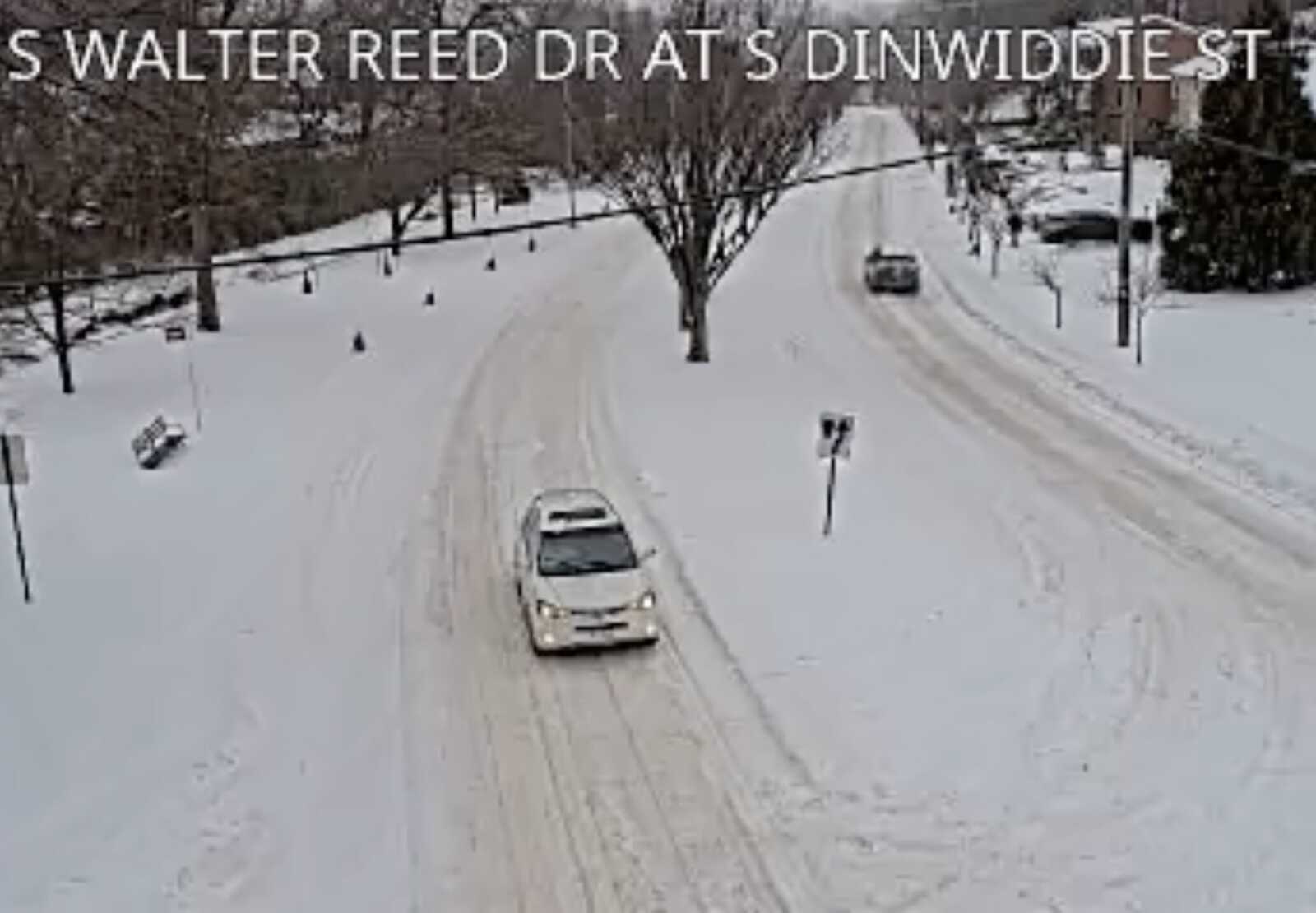 Traffic camera footage this afternoon shows mostly empty streets throughout the county after hazardous conditions led to a county vehicle crashing into a house on S. Glebe Road this morning.