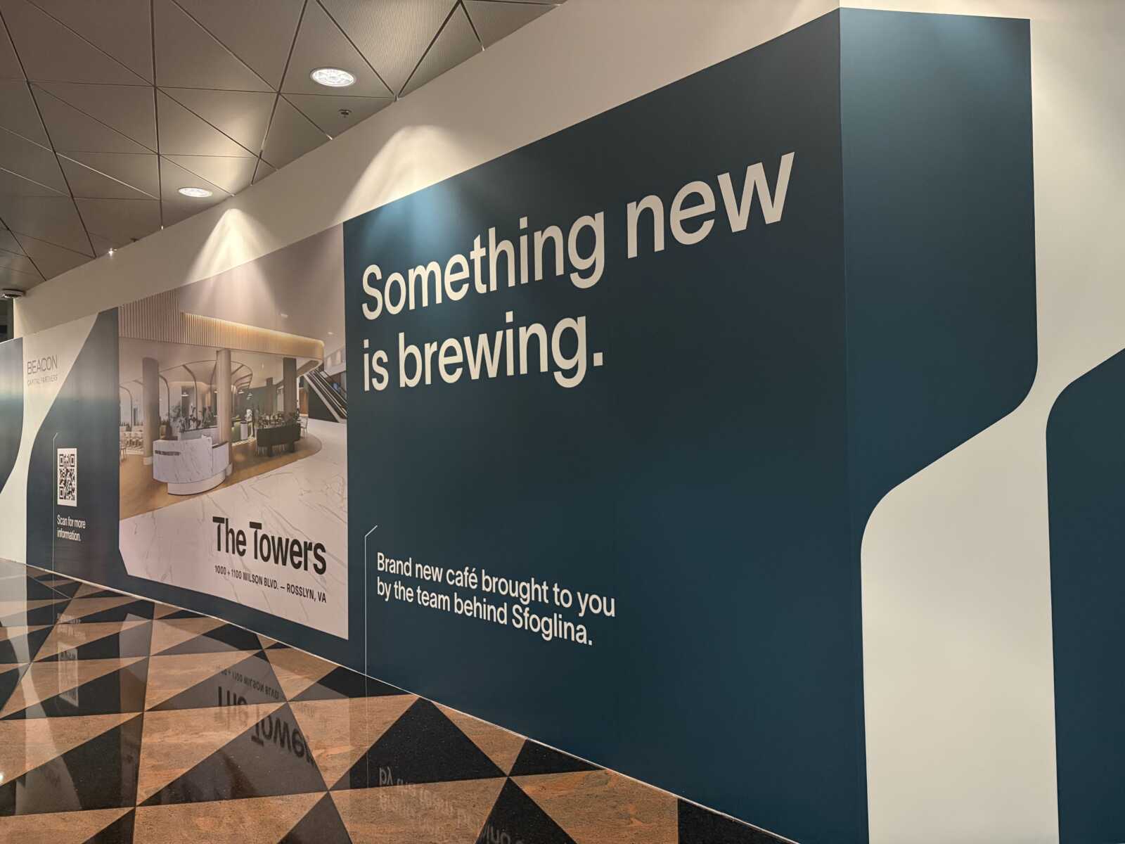 Signage for the all-day cafe by Michelin-starred chef Fabio Trabocchi, first reported by the Washington Business Journal, has appeared in the lobby at The Towers at 1100 Wilson Blvd.