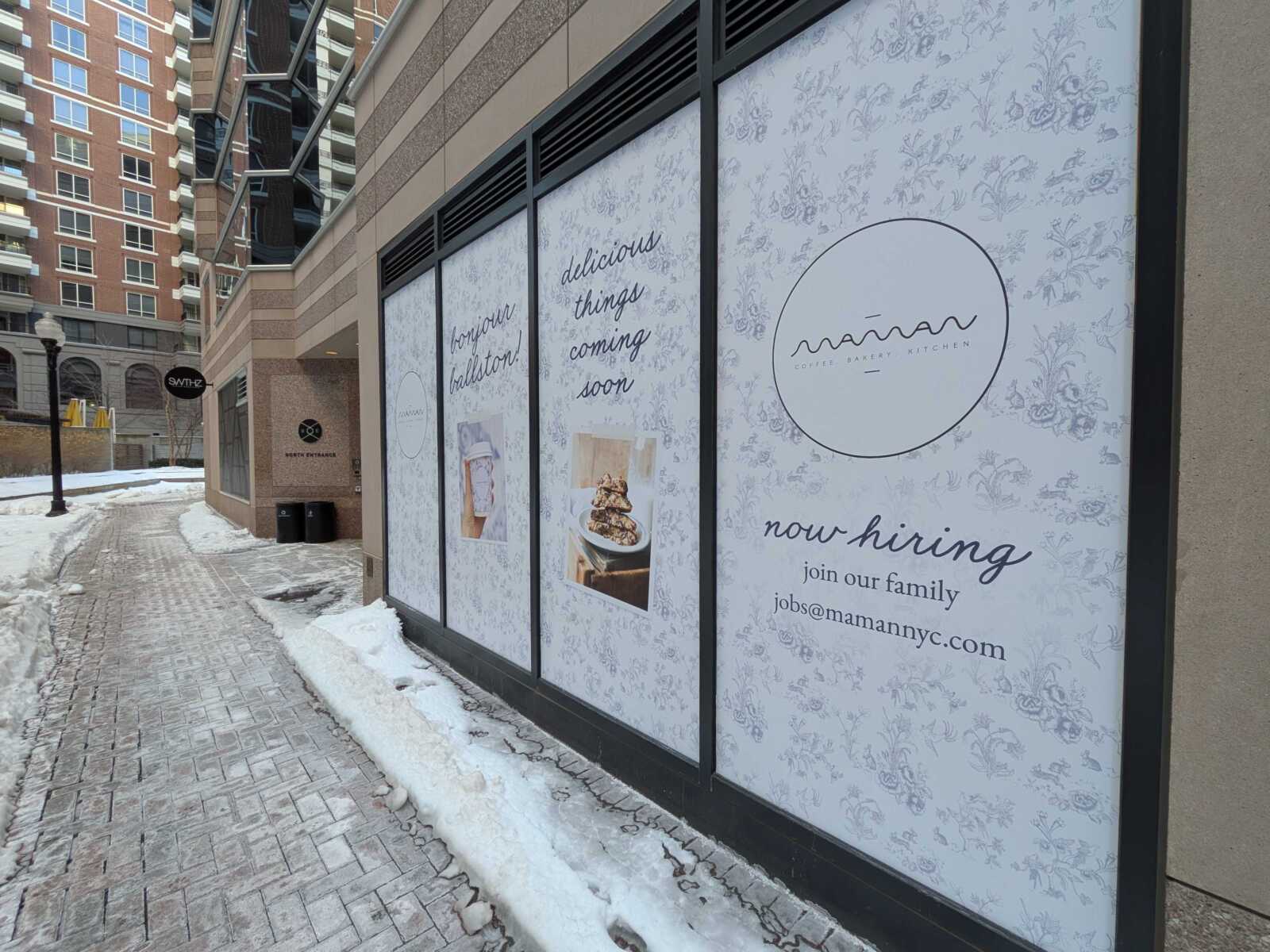 Signage for New York-based Maman now covers the windows at 4121 Wilson Blvd in the Ballston Exchange. This is the former home of Greenheart Juice Shop, which closed in October, and Philz Coffee, which closed in December 2022.