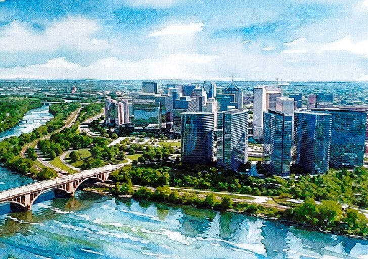 It’s a plan that contrasts sharply with a previous developer’s plans for the site, which have since been abandoned. Woodridge Capital Partners affiliate KBLH originally proposed to renovate the site’s former Key Bridge Marriott hotel and construct only two residential buildings: one with 151 condo units and one with 300 apartments.