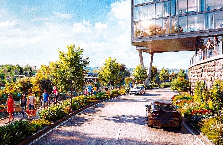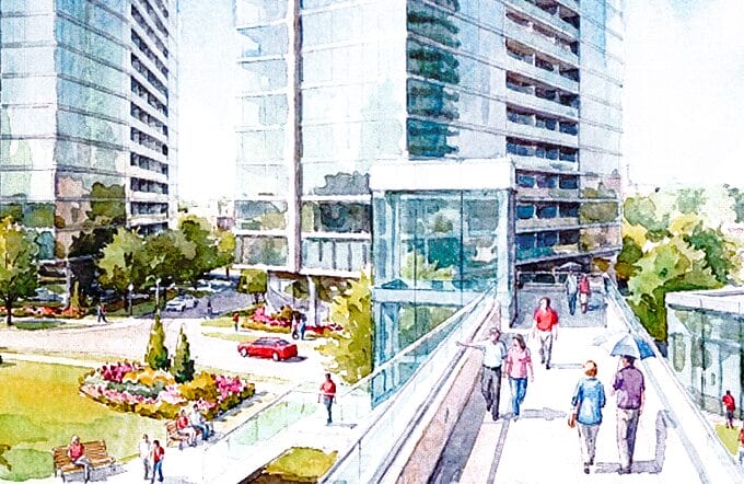 Tall, slender towers between 300 and 138 feet in height would take up the rest of the space, creating enough density for the project to be economical while still stepping down from the tallest buildings in Rosslyn’s urban core and remaining within the Federal Aviation Administration’s height limits.