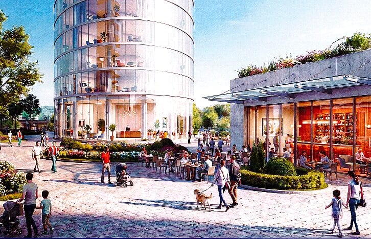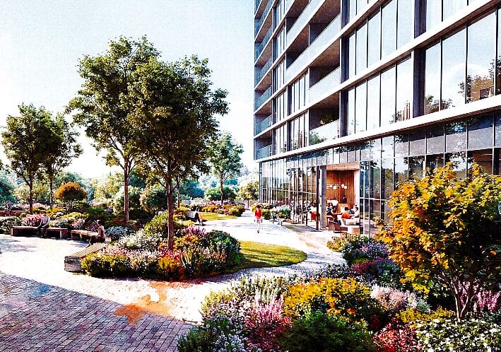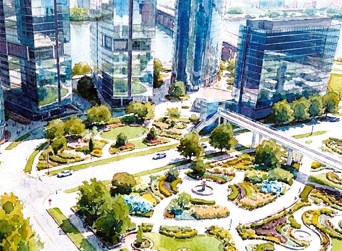 Renderings from back in 2022 depict significantly less open space than Quadrangle’s proposal.
