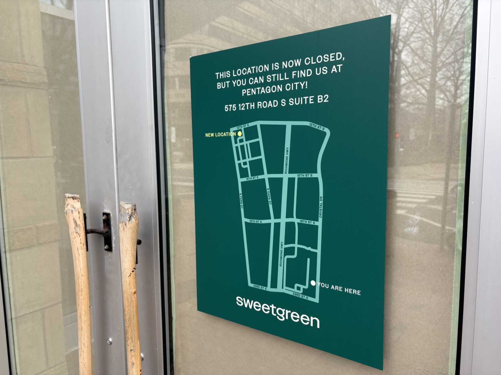 National Landing’s other Sweetgreen, which opened shortly after the Crystal City location at 575 12th Road S. in Pentagon City, will remain open, according to signage.
