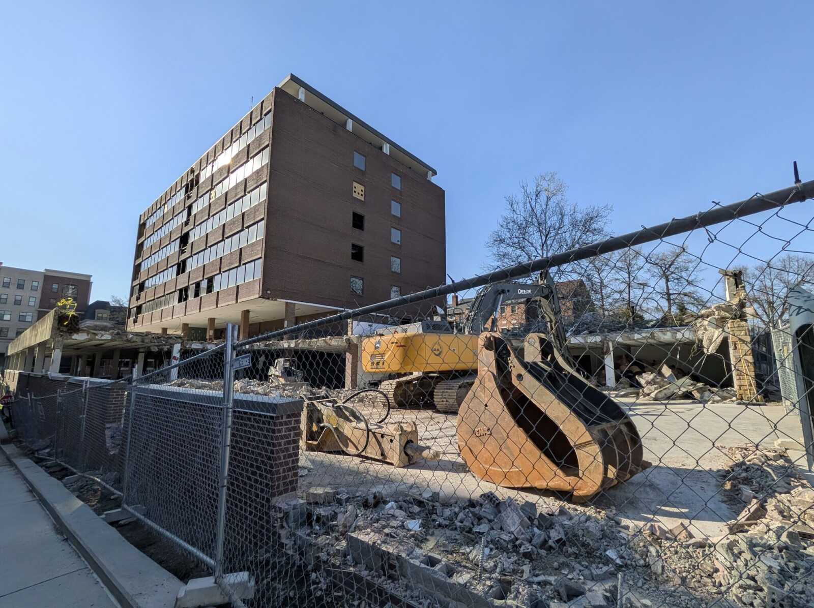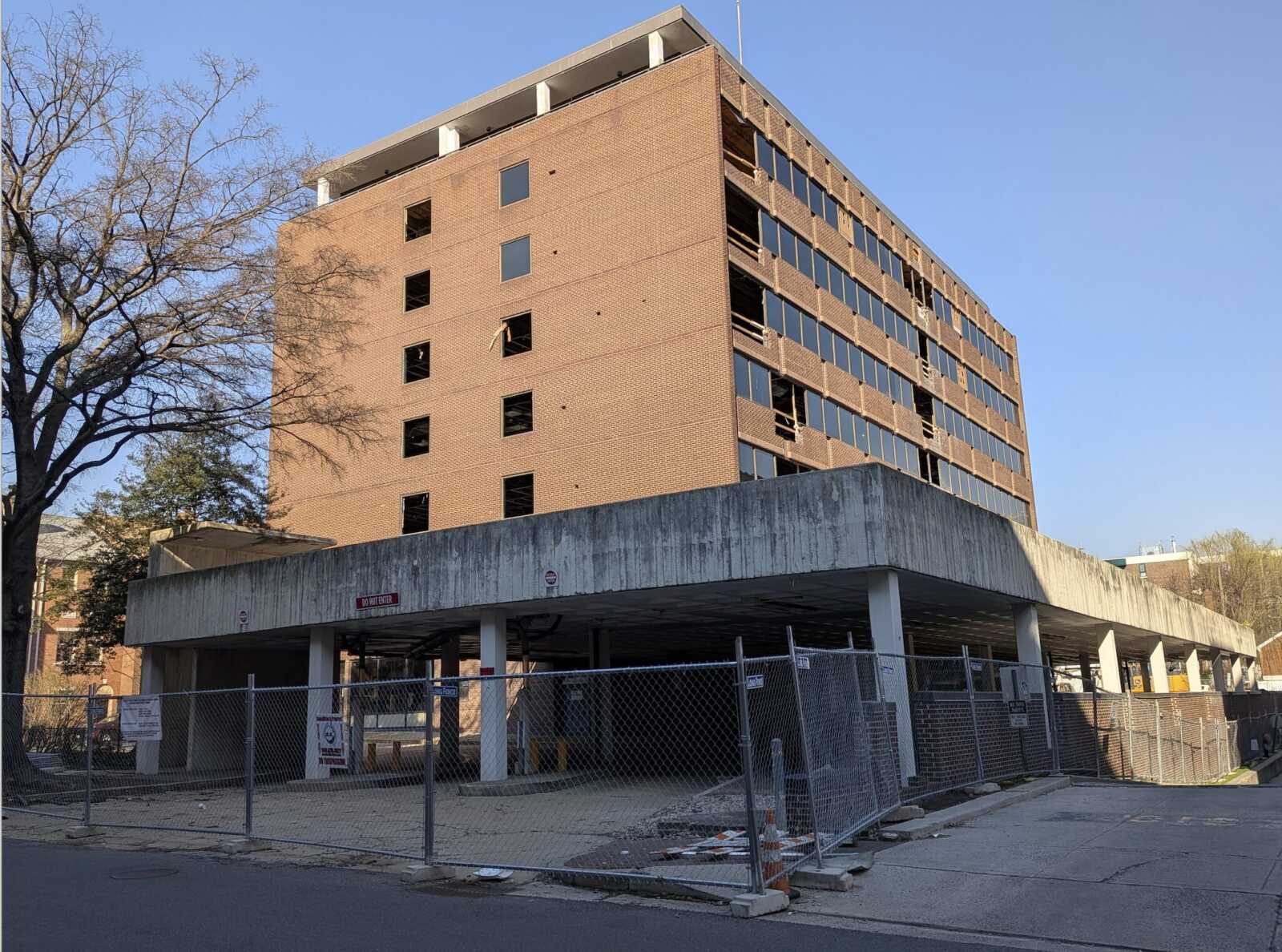 Demolition has begun at the site of an eight-story former office building off of Columbia Pike, making way for a 16-home townhouse redevelopment.