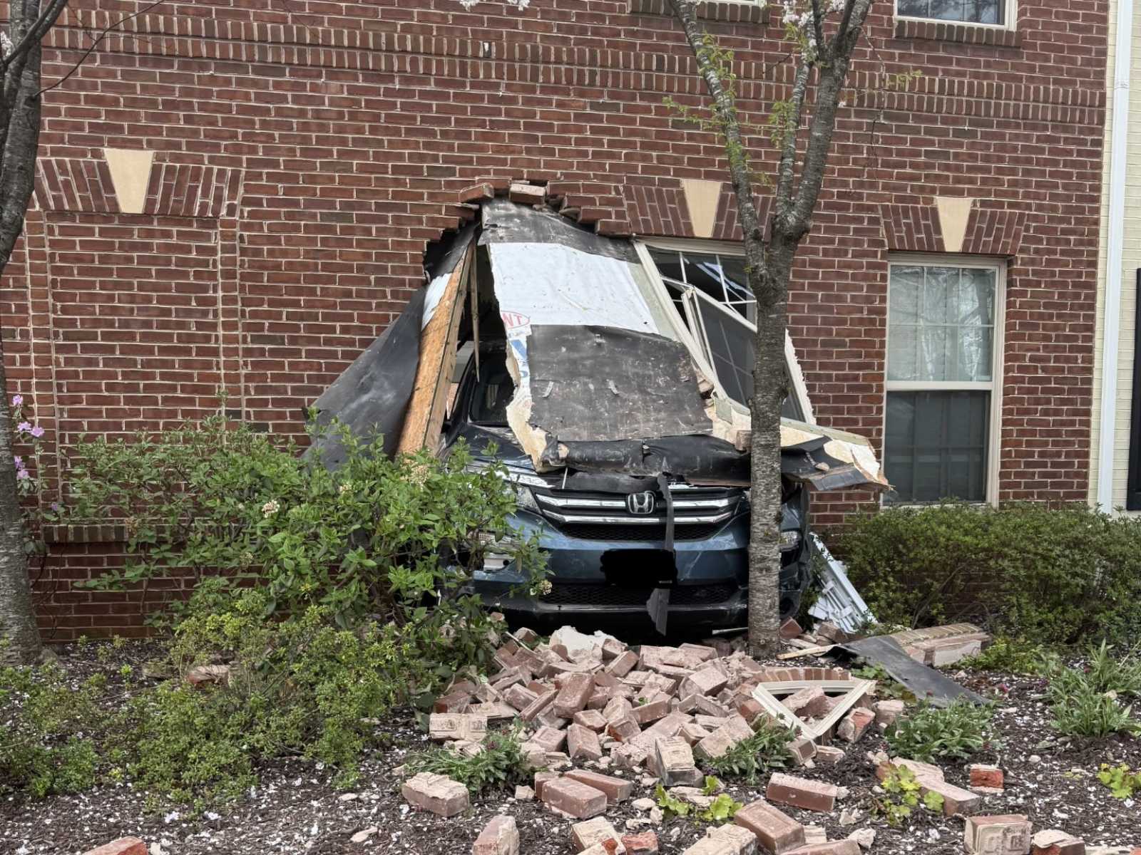 The Arlington County Fire Department responded to the 400 block of N. George Mason Drive just before 12:30 p.m. after a vehicle accelerated through at least one wall, coming to a rest with its front end in an exterior garden.