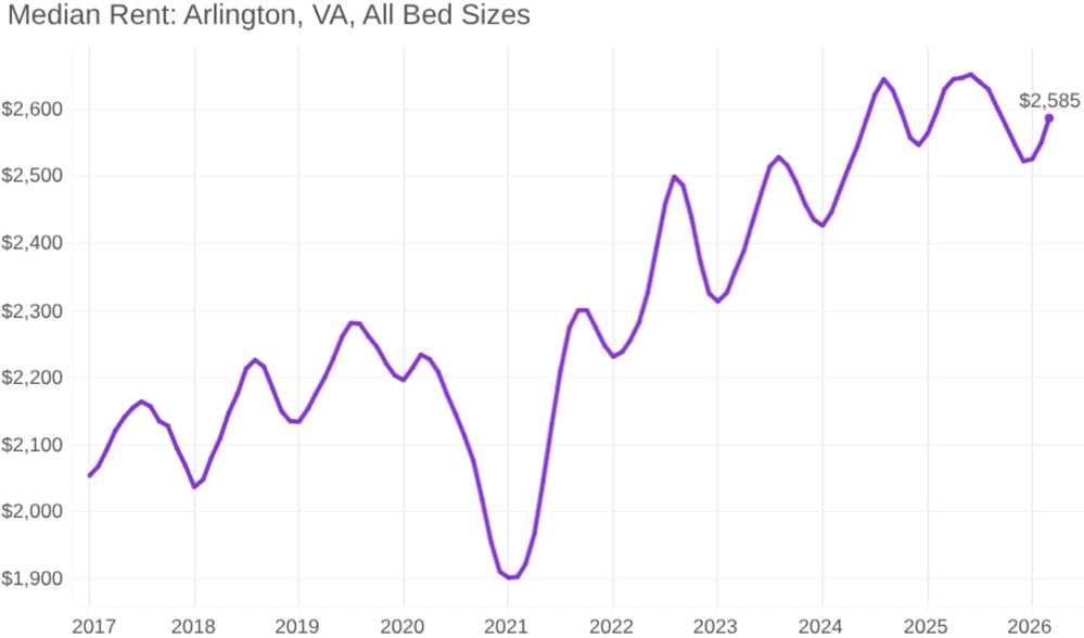 The median rent remains down year over year in Arlington, though the local market is showing price upticks as winter transitions to spring.