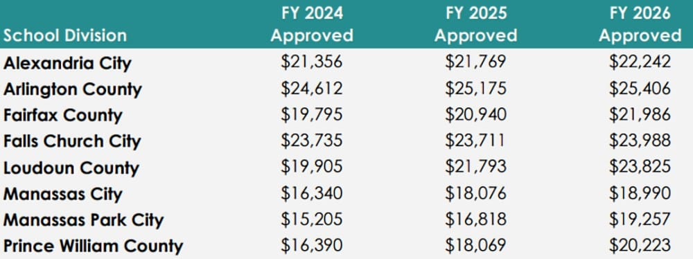 Per-student spending across Northern Virginia (via Washington Area Boards of Education)