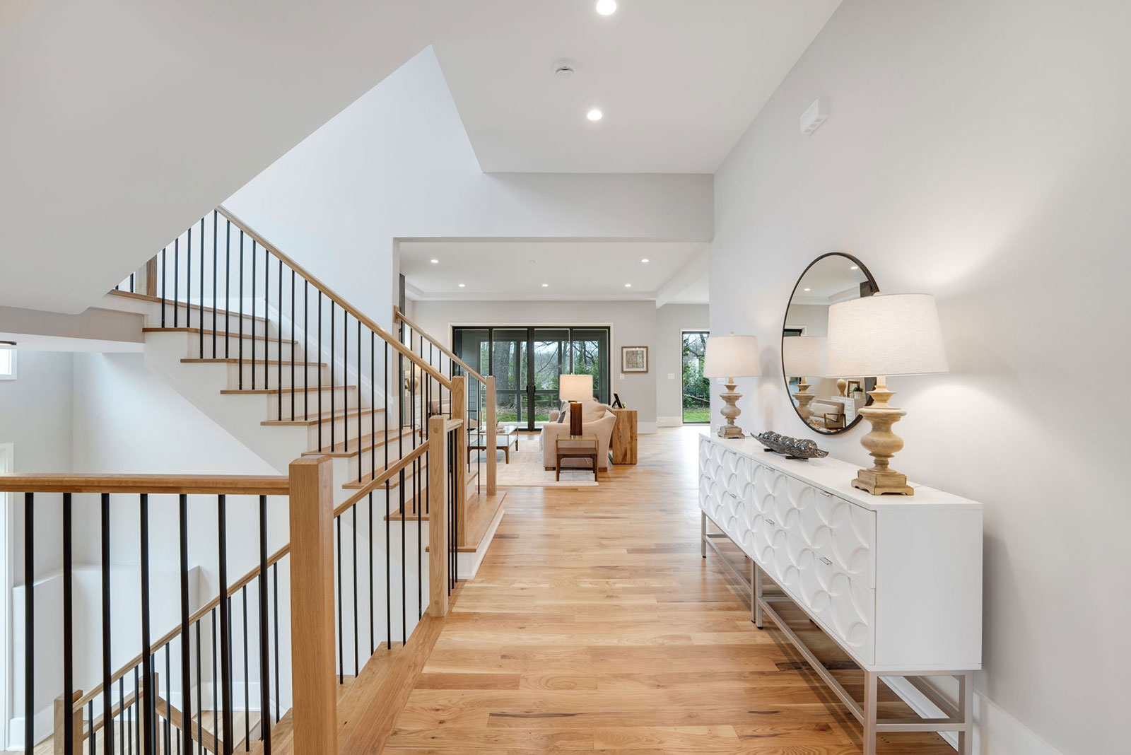 This breathtaking contemporary residence by HR Developers seamlessly combines modern design, luxurious finishes, and an unbeatable location. Positioned just moments from parks like Zachary Taylor and Donaldson Run and within easy reach of Washington Golf & Country Club, this home provides the ideal setting for those seeking both tranquility and convenience. The home’s grand entrance sets the stage with its soaring 10-foot ceilings, impeccable white oak flooring, and abundant natural light.