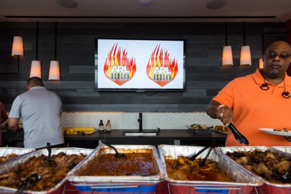 The free event was held at The Bartlett, the new apartment building at 520 12th Street S. in Pentagon City. Guests took advantage of a selection of local beer; platters of beef brisket, pulled pork, pork bell, and wings; and a selection of games from fussball to cornhole to giant Jenga and chess sets.