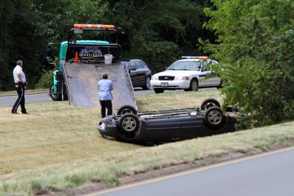 (Updated at 4:15 p.m.) Glebe Road was blocked in both directions in the area of 8th Street S., just north of Columbia Pike, due to an single-vehicle accident around 3:45 this afternoon.