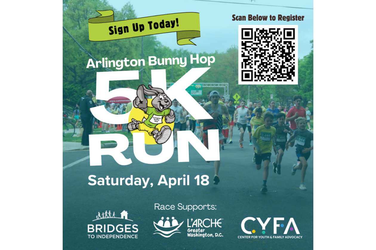 Organized entirely by volunteers, the Bunny Hop 5K brings the community together for a great cause, with all proceeds supporting three local charities: Bridges to Independence, Center for Youth and Family Advocacy & L’Arche Greater Washington, DC