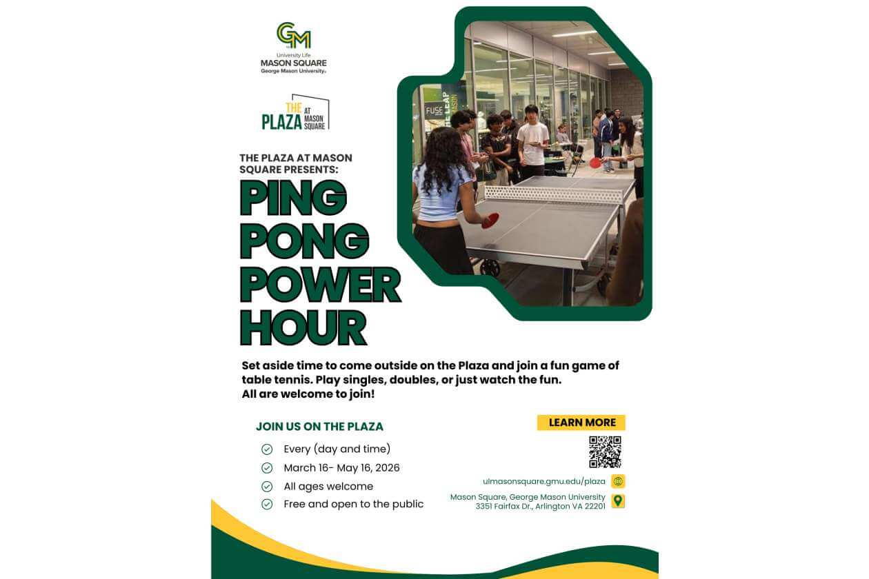 Set aside time to come outside on the Plaza and join a fun game of table tennis. Play singles, doubles, or just watch the fun.