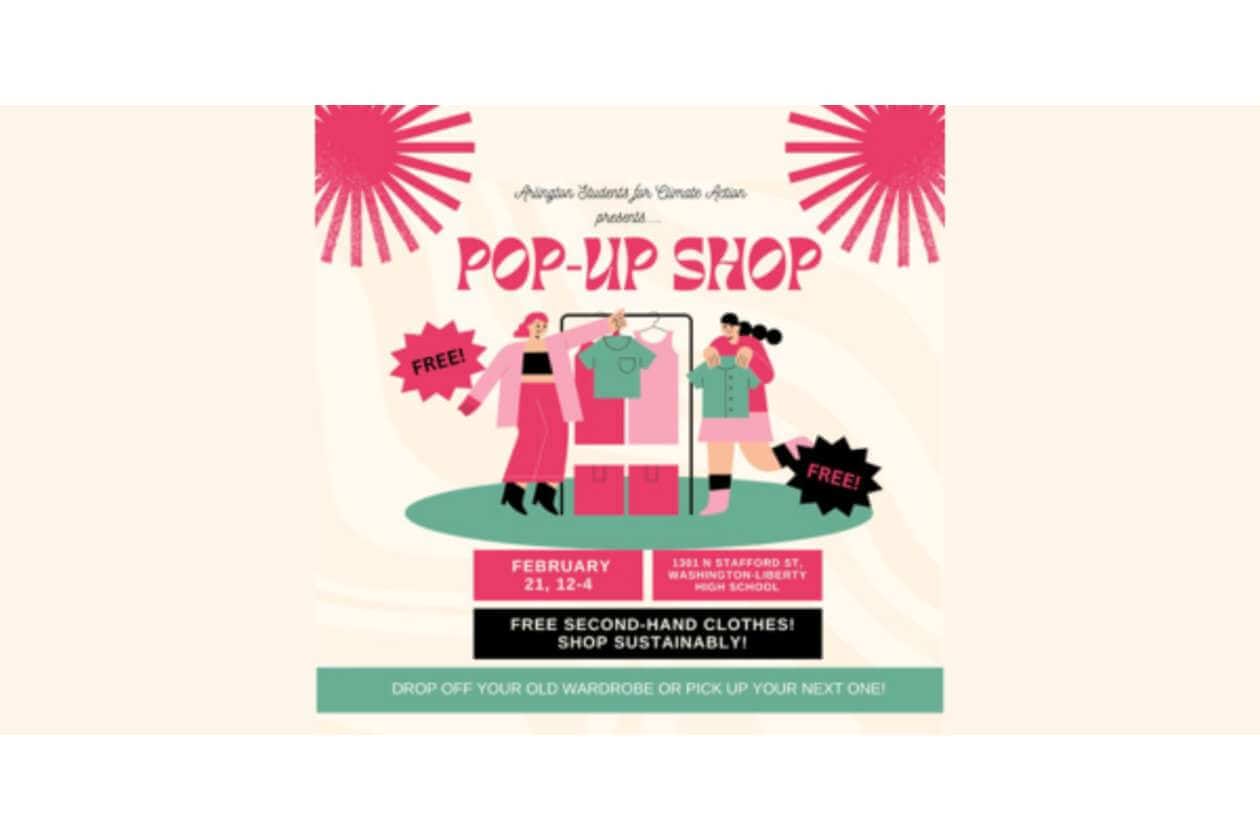 Refresh Your Wardrobe Sustainably for Free – Arlington Students for Climate Action is hosting a free clothing pop-up Saturday, February 21 from 12-4PM at Washington-Liberty High School’s Cafeteria, 1301 N Stafford St., Arlington, VA 22201. You may drop off your old wardrobe or pick up your next one! All students and community members are welcome; no registration required.