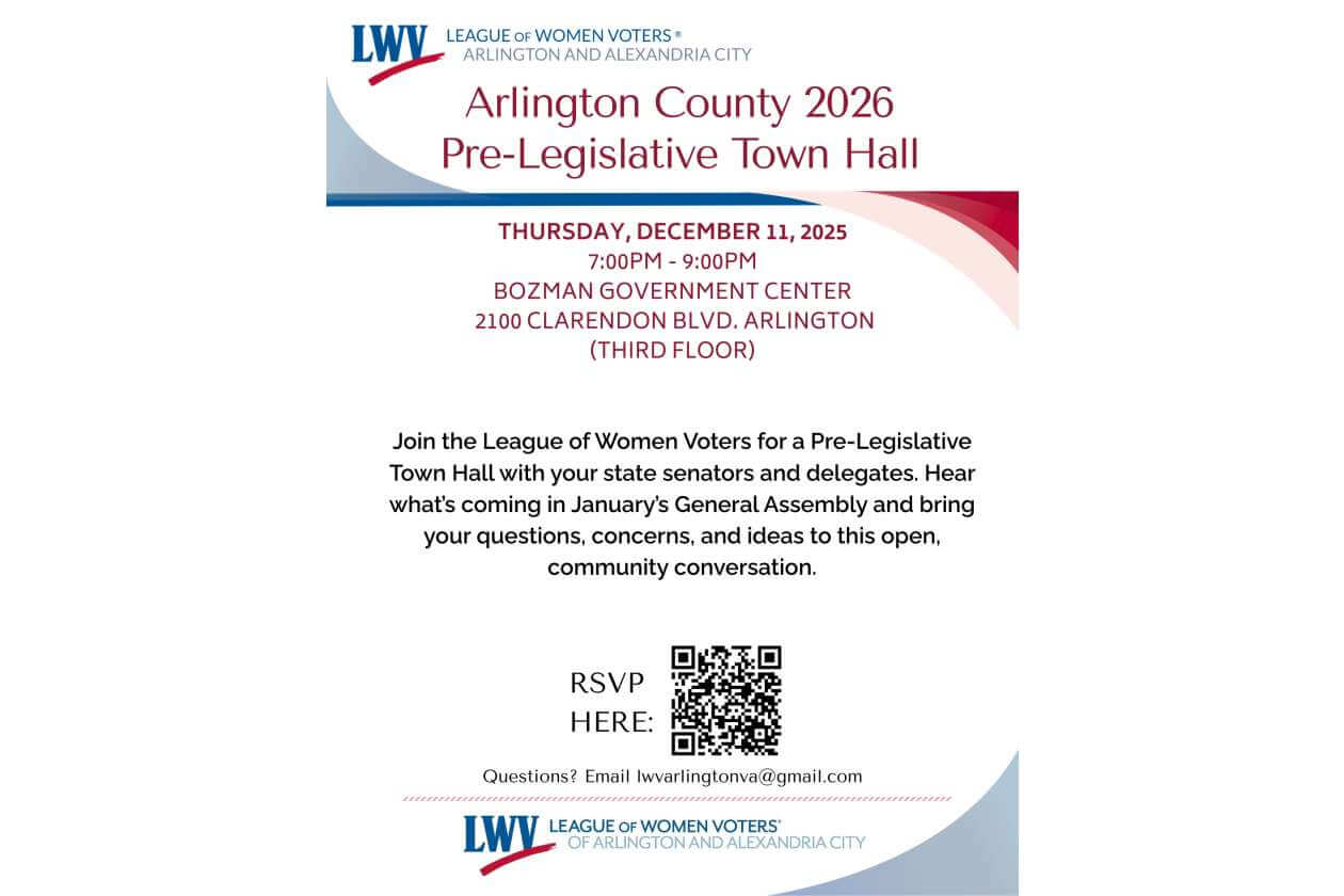 Join the League of Women Voters for a Pre-Legislative Town Hall with local senators and delegates. Hear what’s coming in January and join an open, friendly conversation about the issues that matter to our community.