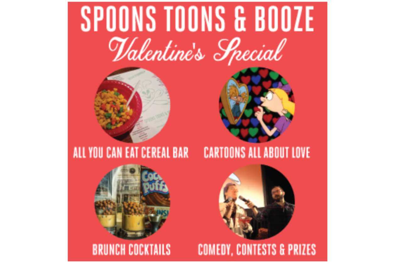 Your Favorite Saturday Morning Cartoons + Brunch Cocktails + Free Cereal + a Special Menu of Valentine’s Day and Love Themed Episodes!
