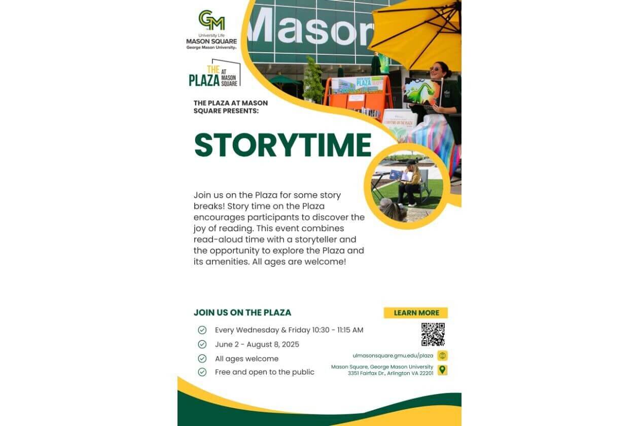 Join us on the Plaza for a story break! Storytime on the Plaza encourages participants to discover the joy of reading. This event combines read-aloud time with a storyteller and the opportunity to explore the Plaza and its amenities.