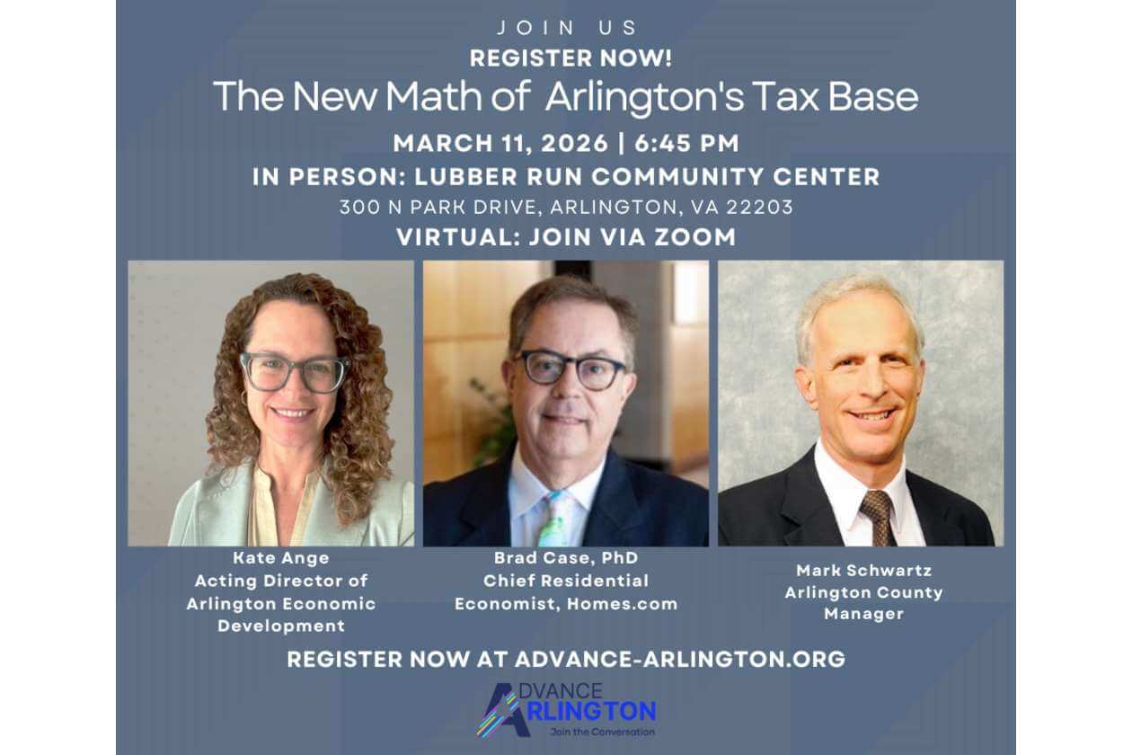 Join us for a candid conversation about the future of Arlington County, its competitiveness, its fiscal strength, and the community whose lives, work, and investment will shape what Arlington becomes.