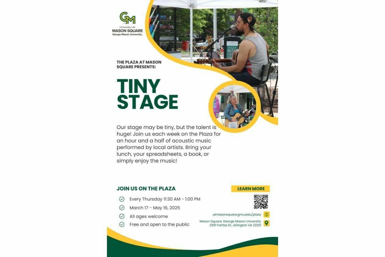 Our stage may be tiny, but the talent is huge! Join us each week on the Plaza for an hour and a half of acoustic music performed by local artists. Bring your lunch, your spreadsheets, a book, or simply enjoy the music!