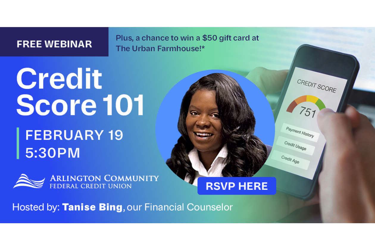 Confused about credit scores or just want to understand yours better? Join us on Thursday, February 19 at 5:30 pm for a free Credit Score 101 webinar.