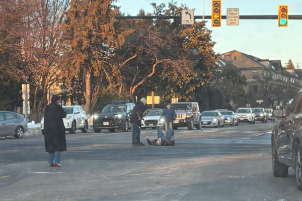 Man down in the middle of the intersection of Langston Blvd and Washington Blvd in East Falls Church (courtesy Audrey Brown)