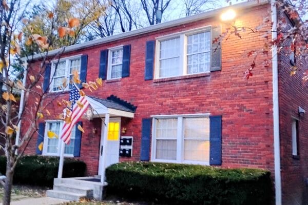 One of the Virginia Village quadplex apartment buildings owned by Falls Church (staff photo by Scott McCaffrey)