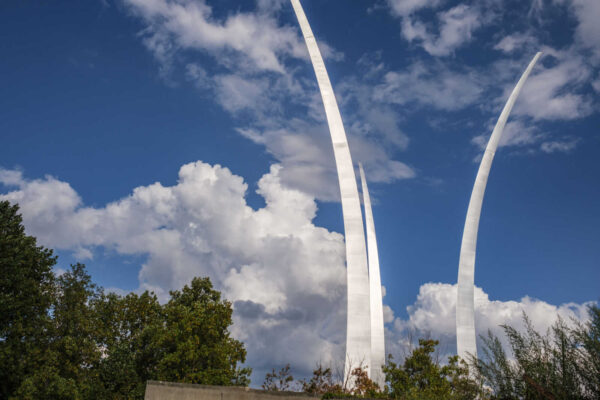 Puffy clouds over the Air Force Memorial (staff photo by Jay Westcott)