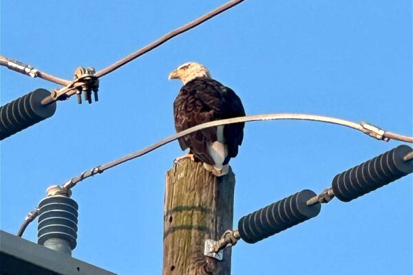 Eagle perched on a utility pole in Arlington View (photo courtesy Sean Hackbarth)