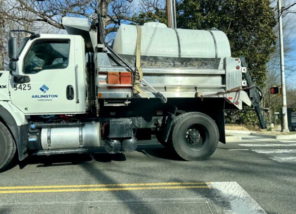 Arlington County truck applying brine (staff photo)