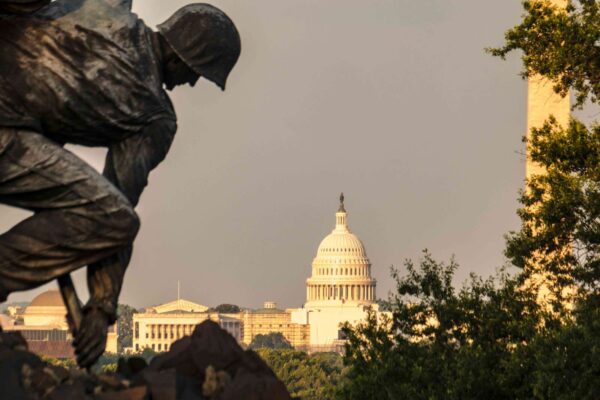 The Capitol as seen from the US Marine Corps War Memorial on a hazy summer day (staff photo by Jay Westcott)