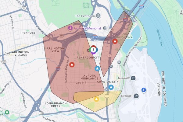 The outage was first reported shortly after 8:30 a.m., encompassing parts of Pentagon City, Crystal City, Aurora Highlands and Arlington Ridge. In all, 6,902 Dominion customers were without power, according to the utility’s website.