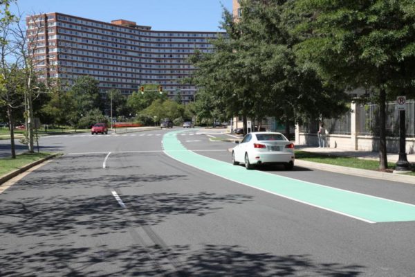 So far, five areas feature the green markings including Veitch Street at Clarendon and Wilson Blvds, Military Road at Nelly Custis Drive and S. Joyce Street near Pentagon Row. Two others should be finished soon, and an additional five are expected by the end of the year.
