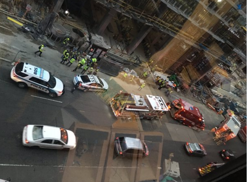 (Updated at 9:35 a.m.) A PRTC commuter bus smashed into the side of the Lenox Club apartment building in Pentagon City Wednesday evening.