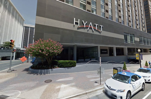 “We were sitting on the third floor of the mall resting and doing some people watching,” Schweinefuss told ARLnow.com. “We both noticed the gentleman in the food court standing by himself and wearing a plastic bag on his head. His mannerisms suggested to me he was possible talking to himself and was just looking around and listening to something on a portable tape recorder. That caught our attention.”
