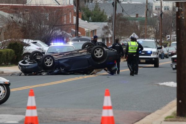 Part of S. Kenmore Street is temporarily closed to traffic due to a flipped vehicle.
