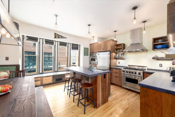 After working up a sweat, you could grab a drink from the wet bar in the room or make a post-workout snack in the kitchen, outfitted with high-end appliances.
