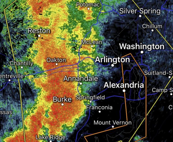 Update at 7 p.m. — Outages in Arlington are now down to just over 3,000 power customers, according to Dominion’s website. Affected neighborhoods include Pentagon City, the Columbia Pike corridor near Penrose Square, the area around Wakefield High School, Lyon Park, Virginia Square, and Old Glebe.