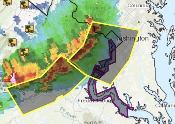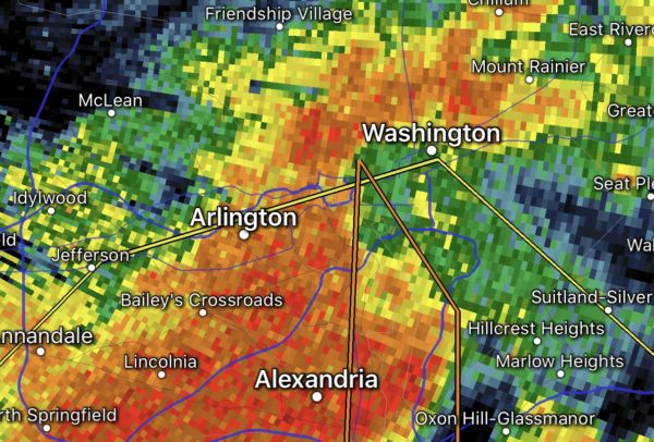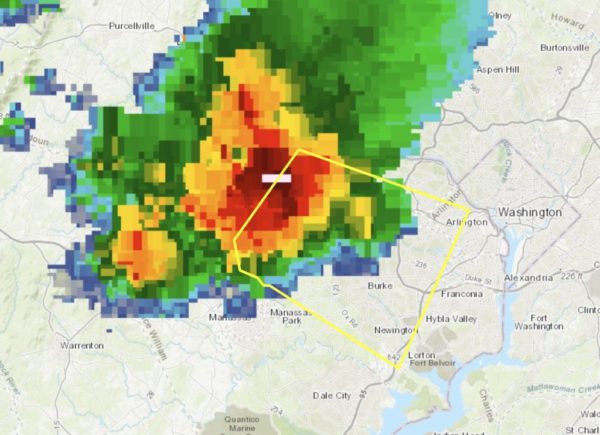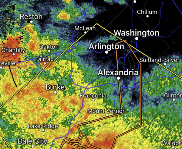 Earlier: Arlington County is now under a Severe Thunderstorm Warning and a Flash Flood Warning.